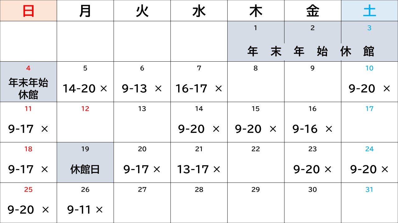 自習室カレンダー(1/20更新)